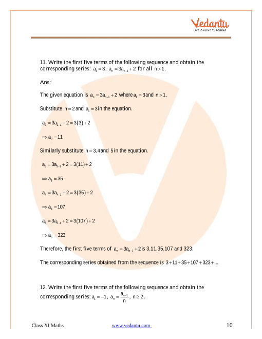 Ncert Solutions Class 11 Maths Sequences And Series